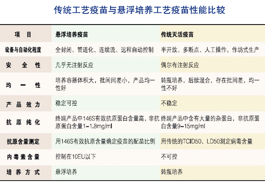 該技術使細胞的懸浮密度更高(3-5×106/ml,遠大于單層細胞培養的106/ml),病毒在細胞內的拷貝數更高,達到國外同類企業的相應技術指標(146s 不低于4ug/ml,高于單層細胞培養10倍以上)。對病毒培養液稀釋10—20倍仍能達到國外同等抗原水平,形成自然濃縮抗原,即便于儲存,又大大降低了生產成本。